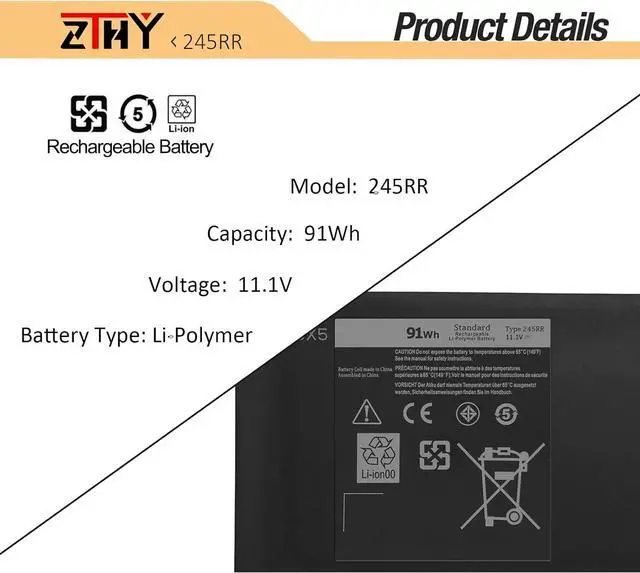 Specifications : Battery Type: Li-ion; Voltage: 11.1V; Capacity: 91wh/9-Cell; Battery life: Up to 500 recharge cycles over the life of the battery.Replace Part Number: 245RR T0TRM 701WJ 7D1WJ 0H76MY H76MV Y758W