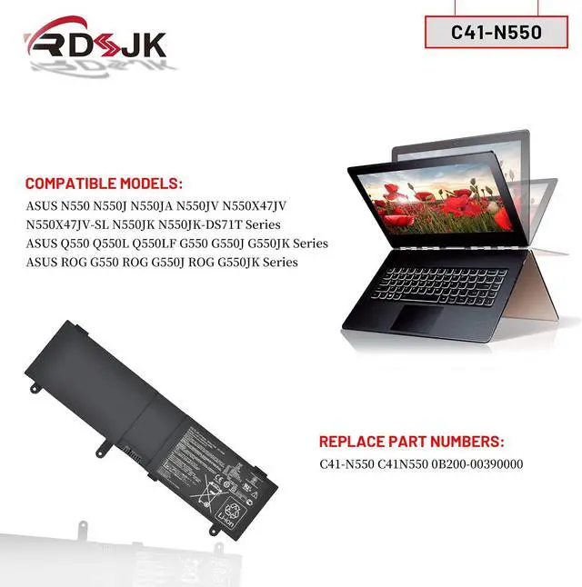 Compatible Models: Fit for Asus N550 N550J N550JA N550JV N550JK N550X47JV N550X47JV-SL Q550L Q550LF G550 G550J G550JK ROG G550 ROG G550J ROG G550JK N550JK-DS71T Series Laptop