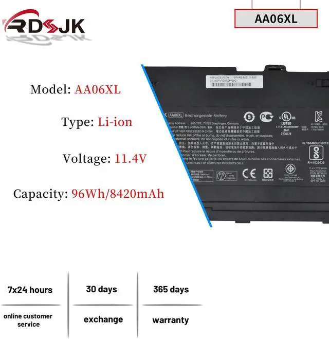Replace Part Numbers: AA06XL AA06096XL HSTNN-DB7L 852711-850 852527-241 852527-242 852527-221 852527-222 AAO6XL