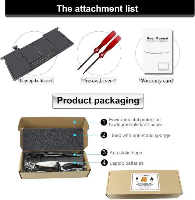 Battery Details- The macbook air battery replacement 11 inch is type A1495 A1406 A1465 A1370, Li-ion. The exact information is 7.3V 35Wh. The package is with two professional screwdrivers which help you to install the battery.