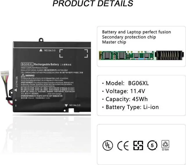 Compatible Part NumberBG06XL, BG06045XL, 804175-181, 804175-1B1, 804175-1C1, 805096-001, 805096-005, HSTNN-IB6Z, BGO6XL, BG06, BGO6.