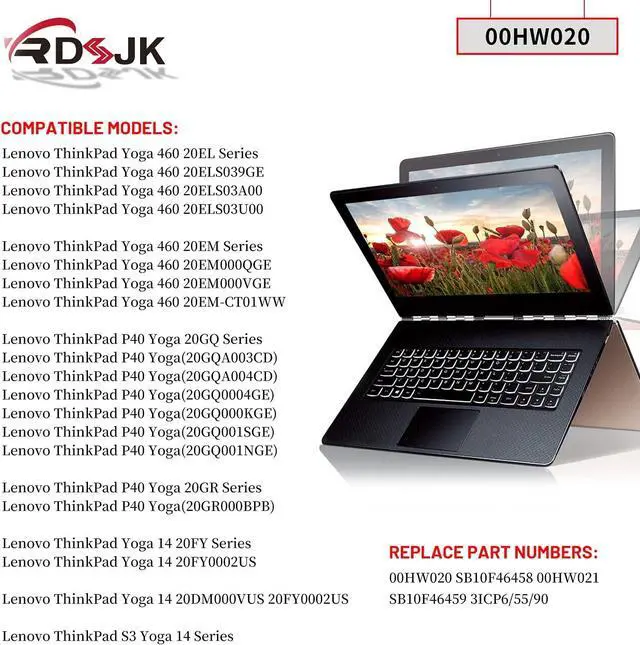 Compatible Models: Fit for Lenovo ThinkPad Yoga 460 Series; S3 Yoga 14 Series, Fit for Lenovo ThinkPad P40 Yoga 20GR 20GQ Series, Fit for Lenovo ThinkPad Yoga 14 20FY Series