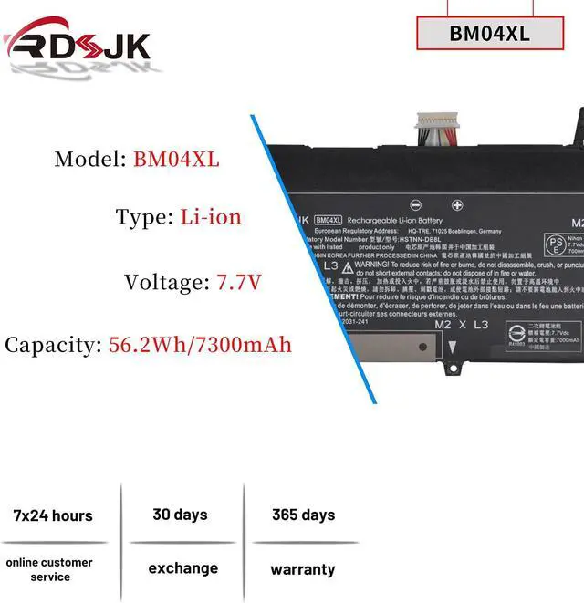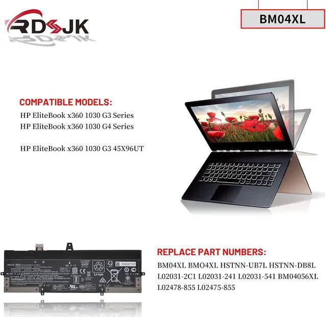 Replace Part Numbers: BM04XL BMO4XL HSTNN-UB7L HSTNN-DB8L L02031-2C1 L02031-241 L02031-541 BM04056XL L02478-855 L02475-855 2ICP5/68/73-2