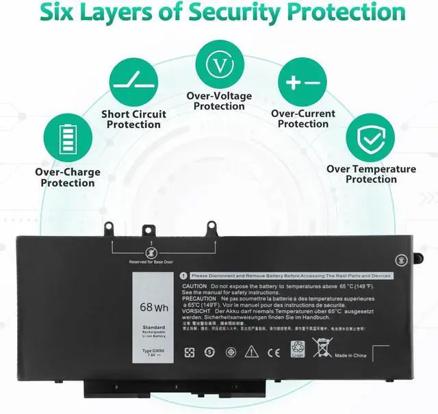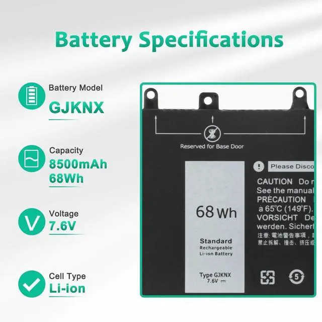 LONG-LASTING BATTERY LIFE: With 7.6V capacity ( 68Wh/4-Cell ), the ( GJKNX) battery ensures all-day power for your laptops in a factory-fresh, never-used battery pack designed for maximum performance.
