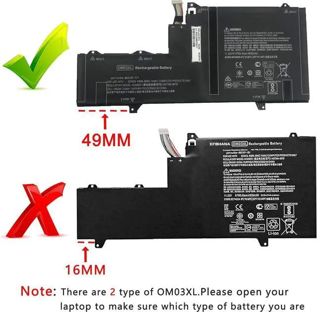 Compatible Part Numbers: OM03XL OM03 OM03057XL HSN-I04C HSTNN-IB70 HSTNN-IB7O 863167-171 863280-855 (Note: OM03XL battery has two kinds of button, and they are not fit for each orther, please check your original model before ordering. )