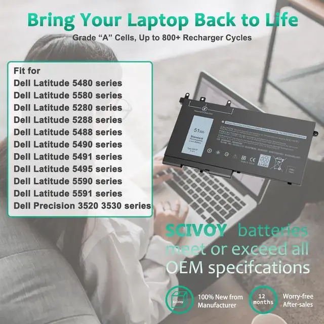 Compatible with Dell Latitude 5480 series Dell Latitude 5580 series Dell Latitude 5280 series Dell Latitude 5288 series Dell Latitude 5488 series Dell Latitude 5490 series Dell Latitude 5491 series Dell Latitude 5495 series Dell Latitude 5590 series Dell Latitude 5591 series Dell Latitude E5280 E5288 E5480 E5490 E5491 E5580 E5590 E5591 series Dell Precision 3520 3530 series Dell Precision M3520 M3530 Series P60F P60F001 P27S P27S001