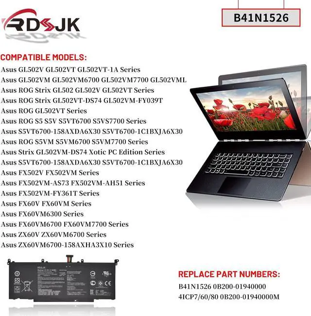Compatible Models: Fit for Asus GL502 GL502V GL502VT GL502VT-1A ROG S5 ROG S5VT6700 ROG Strix GL502 ROG Strix GL502V ROG Strix GL502VT S5V S5VT6700 S5VT6700-158AXDA6X30 S5VT6700-1C1BXJA6X30 Series, Fit for Asus FX502V FX502VM Series, Fit for Asus FX502VM-AS73 FX502VM-AH51 Series, Fit for Asus FX502VM-FY361T Series, Fit for Asus ZX60V ZX60VM6700 Series