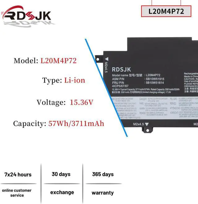 Battery Type: Li-ion; Voltage: 15.36V; Capacity: 57Wh/3711mAh; Color: Black