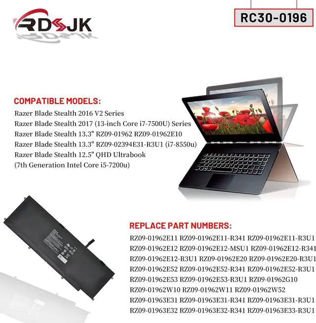 Compatible Models: Blade Stealth (2016) v2, Blade Stealth (i7-7500U) Series, RZ09-01962E12, RZ09-01962W10, RZ09-01962E52 Series