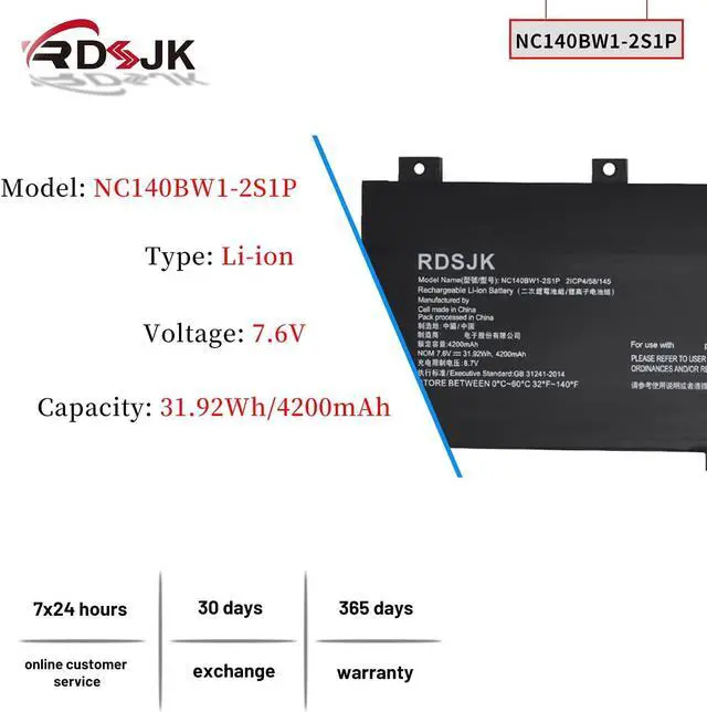 Battery Type: Li-ion; Voltage: 7.6V; Capacity: 31.92Wh/4200mAh; Color: Black
