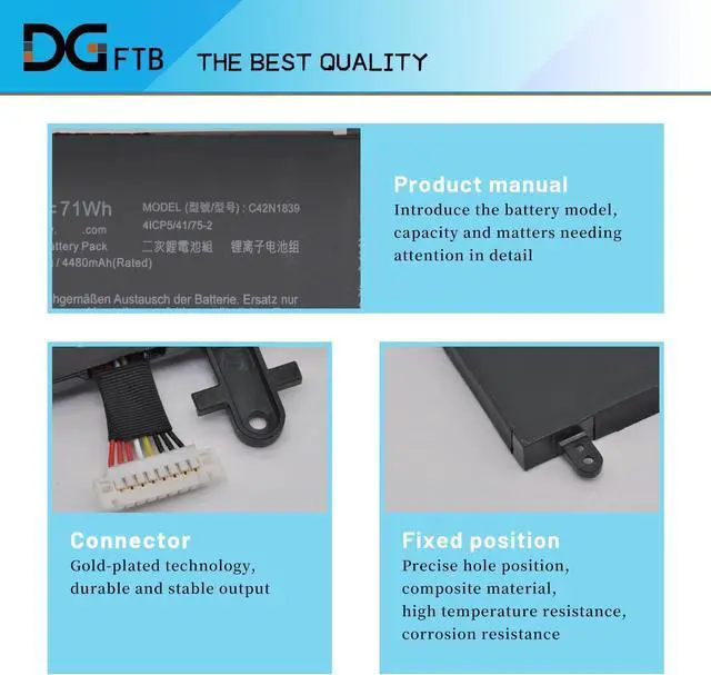 Compatible P/NC42N1839, 0B200-03470000, 4ICP5/41/75-2 TYPE A.This battery C42N1839 has 2 different shapes, please check your original battery shape before order.