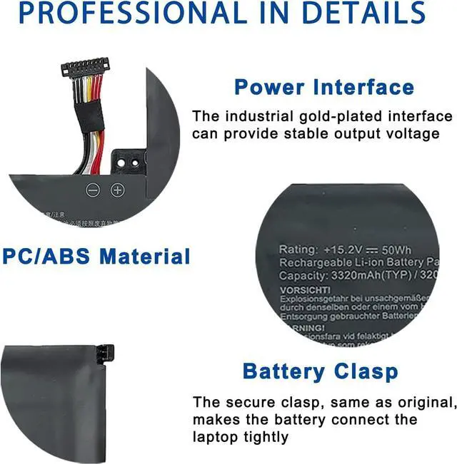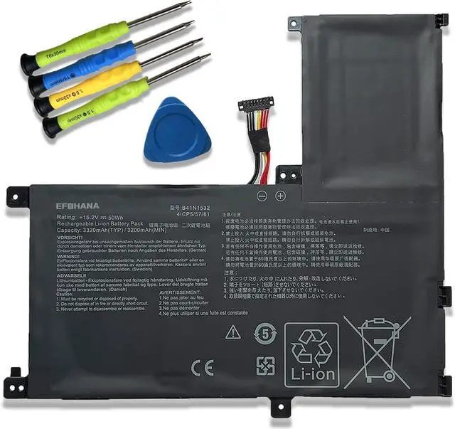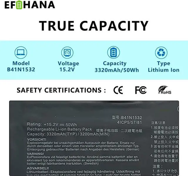 [Specifications] Model: B41N1532 // Battery type: Li-ion // Voltage: 15.2V // Capacity: 50Wh/3320mAh // 100% New from Manufacturer. Top circuit boards and smart chip