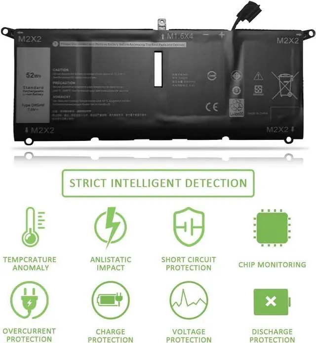 GUARANTEEOur DXHG8 Battery for Dell XPS laptop is an upgraded version. Assembled from A electric core and circuit boards to ensure fast charges and low power consumption, 100% New from Manufacturer, Overcharge and Overdischarge Circuit Protection, Over-temperature and Short-circuit Protection. Each of our laptop batteries is CE-/FCC-/RoHS-Certified.