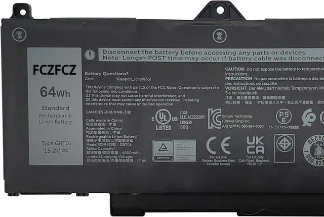 SpecificationsBattery Model: GRT01 // Voltage:15.2V // Capacity:64Wh 4000mAh 4-Cells // Color:Black // Condition:Brand New.