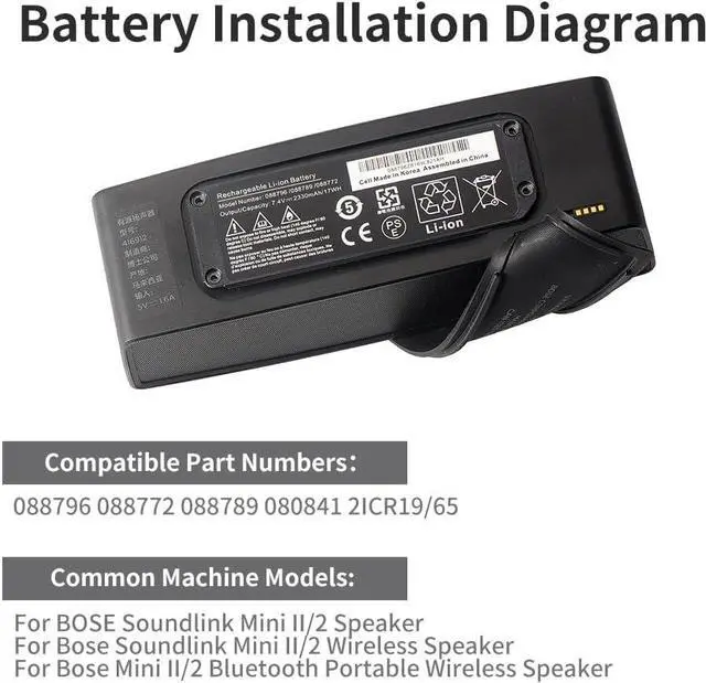 Perfect Battery Compatibility As OriginalReplacement notebook battery perfect fit For BOSE Soundlink Mini II/2 Speaker For Bose Soundlink Mini II/2 Wireless Speaker For Bose Mini II/2 Bluetooth Portable Wireless Speaker ( Not For Bose SoundLink Mini I/1, Soundlink 3/III) . [Please check your device model before purchasing]