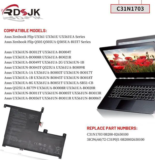 Compatible Models: Fit for ASUS ZenBook Flip UX561UA (2-IN-1) UX561UA-1B UX561UA-2G UX561UA-BO003T UX561UA-BO004T UX561UA-BO008T UX561UA-BO009R UX561UA-BO020R UX561UA-BO021R UX561UA-BO039T UX561UA-BO049T UX561UA-BO051T UX561UA-BO052T UX561UA-BO056T UX561UA-BO005R UX561UA-E8067T, Fit for ASUS ZenBook Flip UX561UN-1A UX561UN-1B UX561UN-BO003T UX561UN-BO004T UX561UN-BO005T UX561UN-BO006T UX561UN-BO011T UX561UN-BO012T UX561UN-BO013T UX561UN-BO017T UX561UN-BO028T UX561UN-BO045T UX561UN-BO056T UX561UN-BO018T UX561UN-BO029T UX561UN-BO011R UX561UN-BO013R UX561UN-BO026R UX561UN-BO035R UX561UN-AX8503T