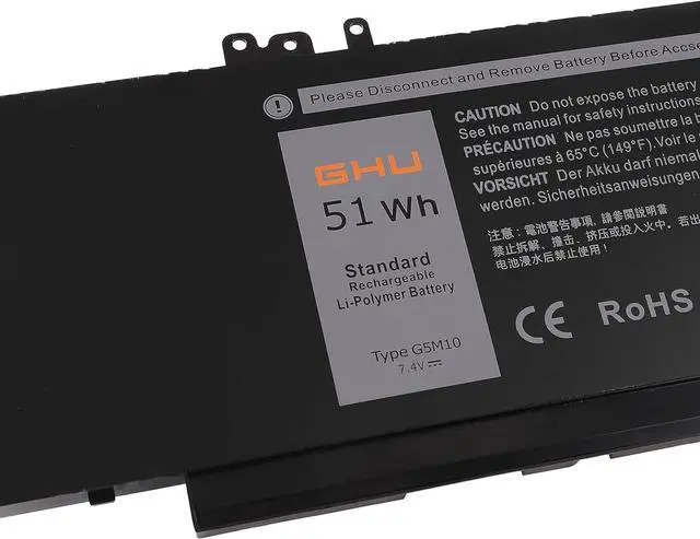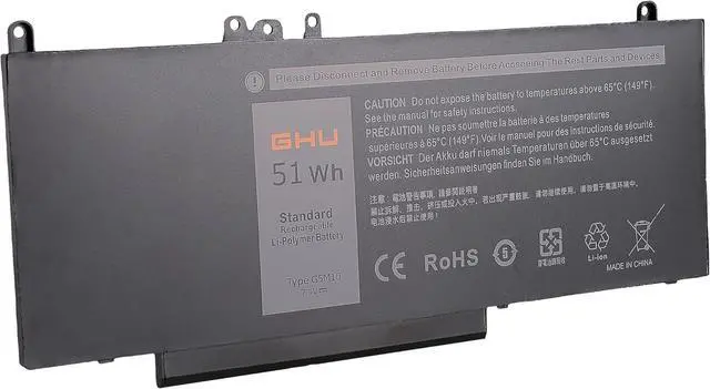 Capacity: 51 WH, color: Black, Up to 500 recharge cycles over the life of the battery. A-Grade Battery cell inside for fast charging and slow discharging. 24/7 Email support. CE FCC and RoHs certified. New GHU G5M10 Battery (6-Cells) Compatible for Dell Latitude E5550 E5450 Notebook 15.6 inch, fits 0WYJC2 8V5GX R9XM9 WYJC2 1KY05 (7.4V 51WH), Battery Type: Li-Polymer Capacity: 51Wh Cells: 4-cell Voltage: 7.4V type g5m10 7.4v