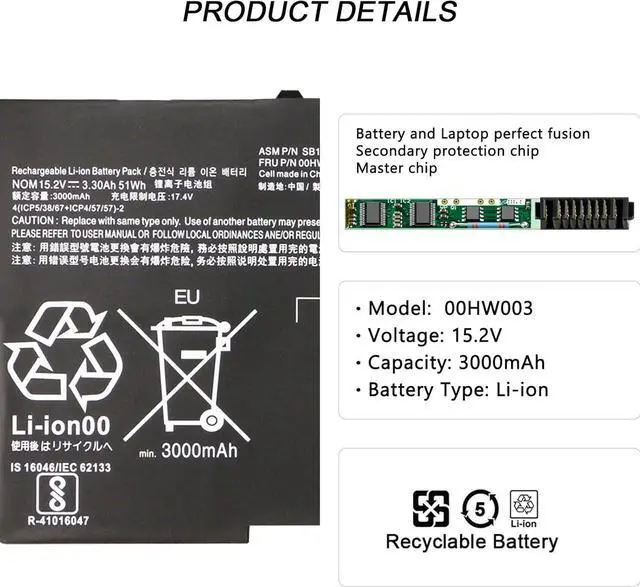 Compatible Part Number:Replacement for 00HW002 00HW003 45N1700 45N1701 45N1702 45N1703 4ICP5/58/73-2 SB10F46440 SB10F46441 Laptop Battery