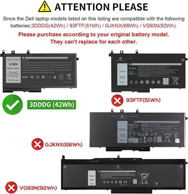 PERFECT-FIT BATTERY MODELS: Support for 3DDDG 3VC9Y 45N3J 80JT9 049XH 451-BBZP. (NOTE: There are 4 types' compatible battery, VG93N(92wh), GJKNX(68wh), 93FTF(51wh) and 3DDDG(42wh). To ensure a perfect fit, Please check your laptops original battery label and select the matching model number and capacity.)