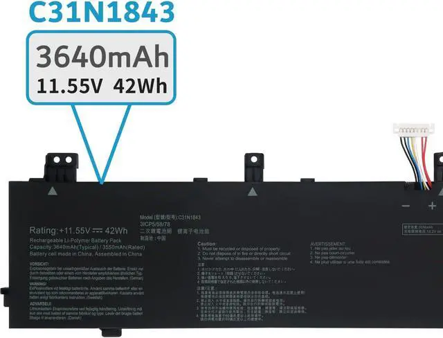 LONG-LASTING BATTERY LIFE: With 11.55V capacity ( 42Wh/3640mAh ), the (C31N1843) battery ensures all-day power for your laptops in a factory-fresh, never-used battery pack designed for maximum performance.