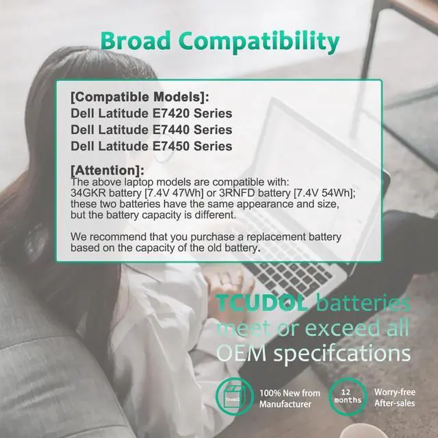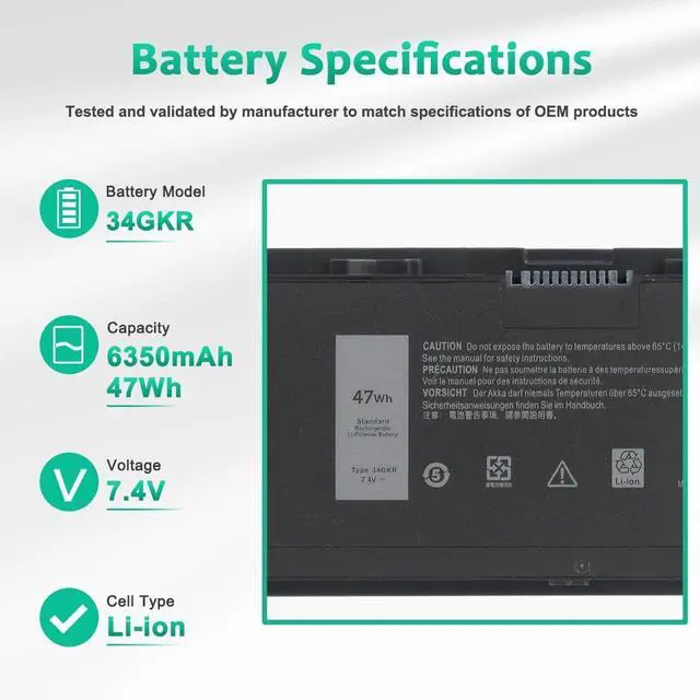 LONG-LASTING BATTERY LIFE- With 7.4V capacity ( 47Wh/ 4-Cell ), The ( 34GKR ) battery ensures all-day power for your laptops in a factory-fresh, Never-used battery pack designed for maximum performance.