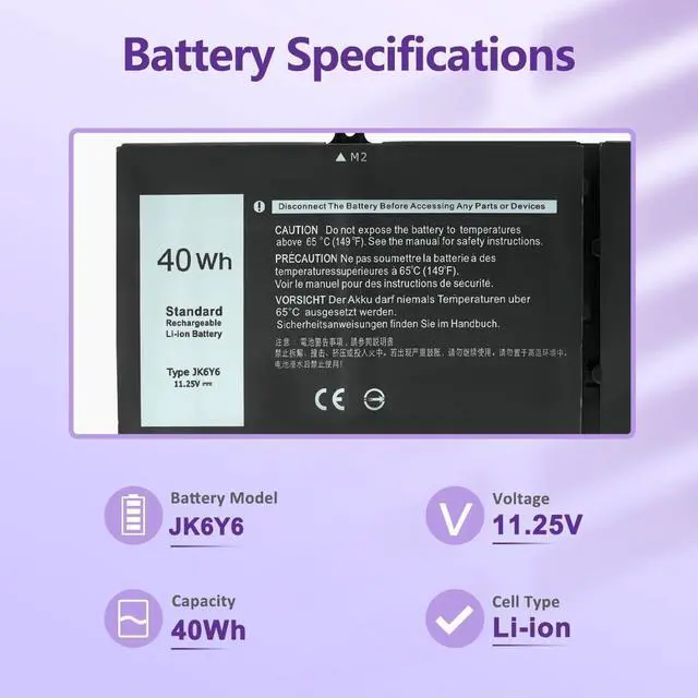 LONG-LASTING BATTERY LIFE: With 11.25V capacity (40Wh/3550mAh), the (JK6Y6) battery ensures all-day power for your laptops in a factory-fresh, never-used battery pack designed for maximum performance.