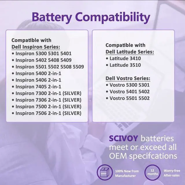 GUARANTEED FIT THESE LAPTOP MODELS: Compatible with Dell Latitude 3410 3510, Dell Inspiron 5300 5301 5401 5402 5408 5409 5501 5502 5508 5509, Dell Inspiron 5400 5406 7405 (2-in-1), Inspiron 7300 7306 7500 7506 (2-in-1) Silver, Dell Vostro 5300 5301 5401 5402 5501 5502.