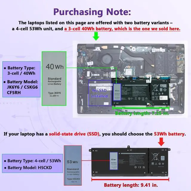 PERFECT-FIT BATTERY MODELS: Support for JK6Y6 C5KG6 CF5RH.