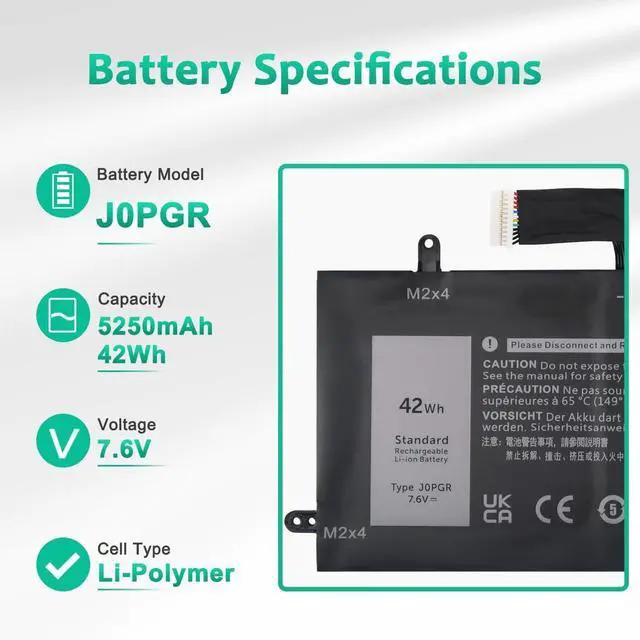 LONG-LASTING BATTERY LIFE:With 7.6V, capacity (42Wh/5250mAh), the( J0PGR ) battery ensures all-day power for your laptops in a factory-fresh, never-used battery pack designed for maximum performance.
