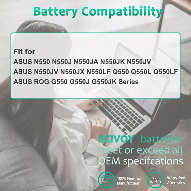 GUARANTEED FIT THESE LAPTOP MODELS: Compatible with ASUS N550 N550J N550JA N550JK N550JV N550JX N550LF, ASUS Q550 Q550L Q550LF, ASUS ROG G550 G550J G550JK Series.