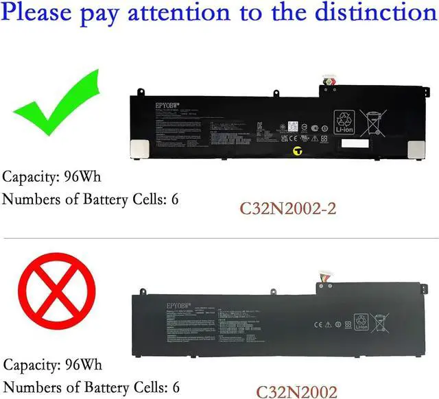 Compatible with Laptop Models For Asus ZenBook Pro 15 Flip OLED UP6502ZA UP6502ZA-M8006W UP6502ZA-M8012W UP6502ZA-M8016W UP6502ZA-M8018W UP6502ZA-M8019W UP6502ZA-BB71T-CB Series; For Asus ZenBookPro15 UP6502ZD UP6502ZD-M8007W UP6502ZD-M8023W UP6502ZD-M8027W UP6502ZD-M8029W UP6502ZD-M8036W UP6502ZD-M731X UP6502ZD-BB72T-CB Series.( Note: There are 2 different models of batteries here, namely C32N2002 96Wh and C32N2002-2 96Wh,suitable for different laptops.They vary in capacity, size and screw hole location. Please open the back cover of your notebook to confirm the battery type before purchasing.)