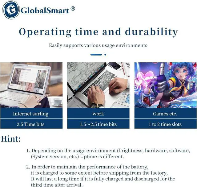 Our laptops have become indispensable tools for conducting business, communicating with friends, online shopping, and other daily activities. That's why you need to equip your device with G GLOBALSMART high-performance laptop batteriesreliable batteries that perfectly match your lifestyle. We are professional sellers of laptop batteries for various brands. Our laptop batteries are designed to meet or exceed the safety and efficiency standards of original equipment manufacturers (OEMs), while still offering a more cost-effective alternative to expensive original batteries. Equipped with a wealth of safety featuresin the laptop battery field, G GLOBALSMART is your best choice!