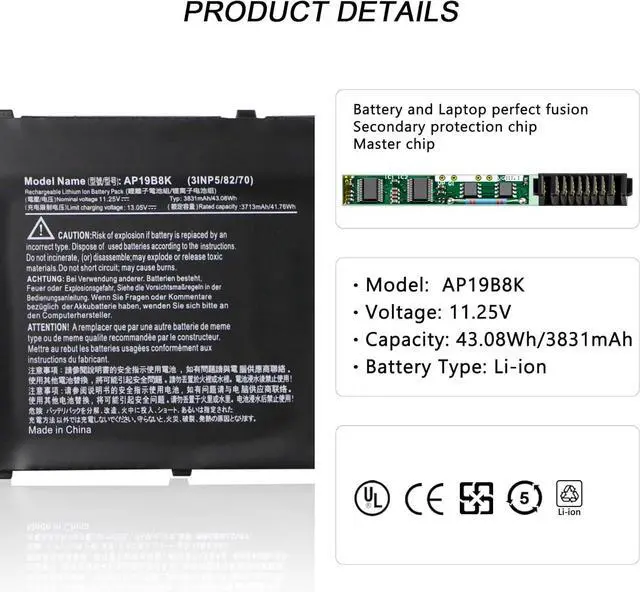Compatible Part NumberReplacement for AP19B8K AP19B5K 3INP5/82/70 Laptop Battery.