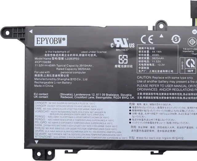 SpecificationsBattery Model: L22B3PE0 / VolL22B3PE0 Battery SB11N47507 5B11N47495 SB11N47503 5B11L67327 L22D3PE0 SB11N47432 5B11N47501 SB11L67331 5B11L67341 L22L3PE0 SB11L67339 5B11L67317 SB11N47467 5B11N47485 L22M3PE0 SB11L67333 5B11L67323 SB11N47503 5B11N47497 Battery K14 G2 IRU (Type: 21G0, 21G1) K14 G3 IMU ( Type: 21KL 21KM ) ThinkBook 14 G6 IRL ABP 14 G7 IML ARP 14 G8 IRL 16 G6 ABP 16 G7 IML ARP 16 G8 IAL IRL Notebook Laptop Battery 11.5V 45Wh 3910mAh 3-Celltage: 11.52V / Capacity: 45Wh 3910mAh 3-Cell / Color: Black / Condition: Brand New.