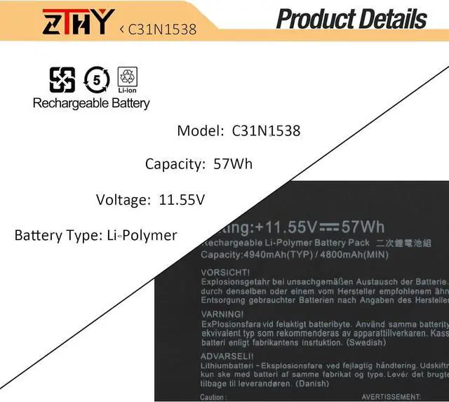 Compatible Part Number C31N1538 C31PQ9H 0B200-02080000 3ICP4/91/91