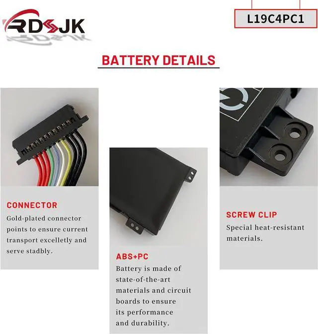 Note: There are 2 types connector of this L19C4PC1 battery, Short Line and Long Line, this item is Short Line, please open the back cover of the laptop to confirm the model and shape of the laptop battery before placing orders.