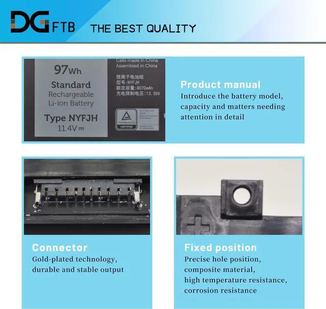 Compatible P/N: NYFJH 7M0T6 0VRX0J 0WMRC77I 5TF10 0WNRC 00WNRC GW0K9 0GW0K9(Notes:NYFJH battery has two kinds of connectors.)