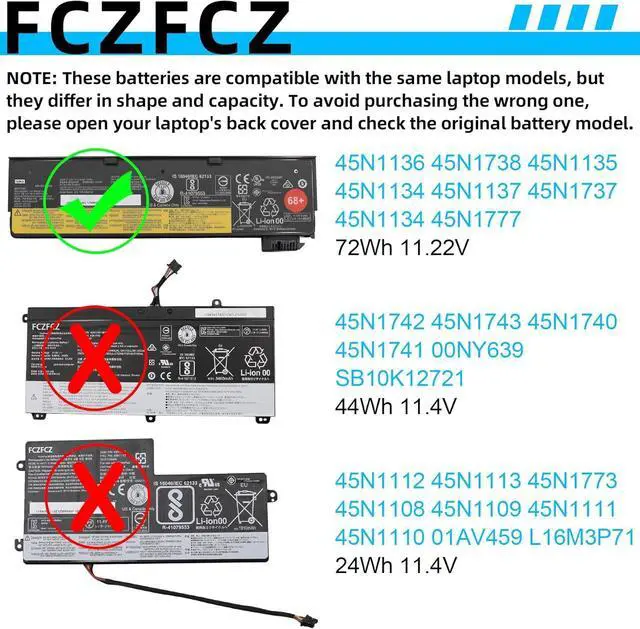 Replacement for Part Number45N1136 45N1738 45N1134 45N1135 45N1777 45N1737 45N1128 45N1767 45N1130 45N1129 45N1131 45N1735 45N1132 45N1736 45N1734 45N1735 45N1133 68+ 45N1126 45N1127 L16M3P72 SB10K97603 01AV460 45N1775 45N1124 45N1125 68 (NOTE: Please kindly open your laptop back cover to confirm your original battery model is the same as listed here. Thanks!)