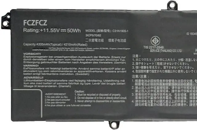 SpecificationsBattery Model:C31N1905-1 // Voltage:11.55V // Capacity:50Wh 4335mAh 3-cell // Color:Black // Condition:Brand New.