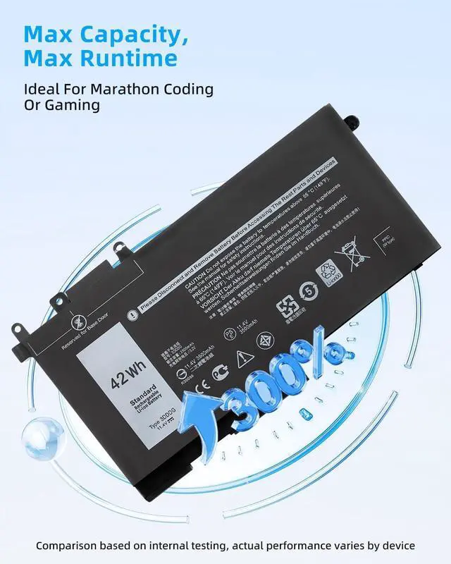 SPECIFICATION : Model Name: 3DDDG Voltage: 11.4V. Capacity: 42Wh / 3500mAh / 3-Cell; Grade A cells ensure fast charges and low power consumption; Built-in circuit protection ensures both safety and stability. Condition: 100% New; Battery life: More than 1000 cycles.
