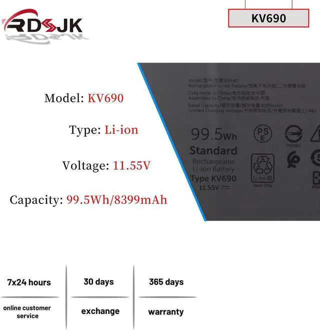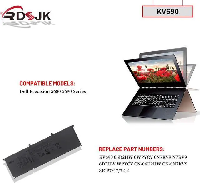 Replace Part Numbers: KV690 06D2HW 0WPYCV 0N7KV9 N7KV9 6D2HW WPYCV CN-06D2HW CN-0N7KV9 3ICP7/47/72-2