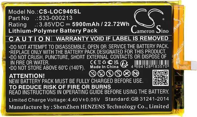 Battery kind: Li-Polymer, Voltage: 3.85V, Capacity: 5900mAh / 22.72Wh. Size: 97.80 x 62.30 x 6.50mm, Weight: 139g.