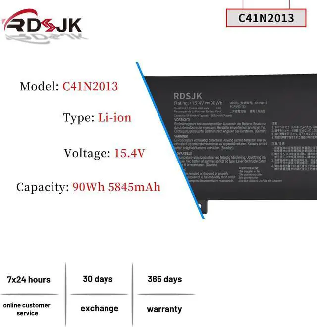 Battery type: Li-ion; Voltage: 15.4V; Capacity: 90Wh/5845mAh; Cells: 4-cell