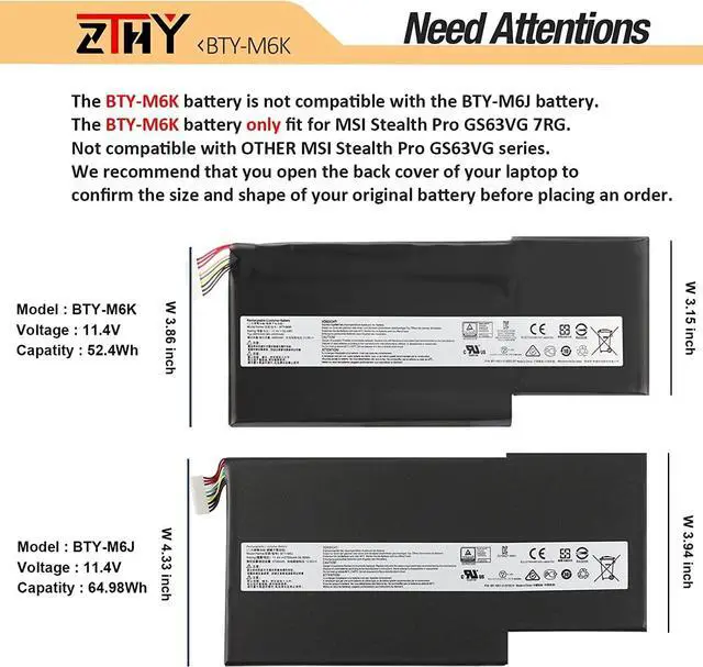 Compatible Part Number BTY-M6K MS-17F2 MS-17B7 MS-16W1 MS-16R1 MS-17B4 MS-17F3 MS-17F4 MS-17B3 MS-17F1