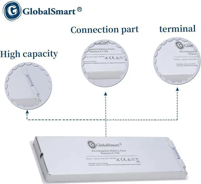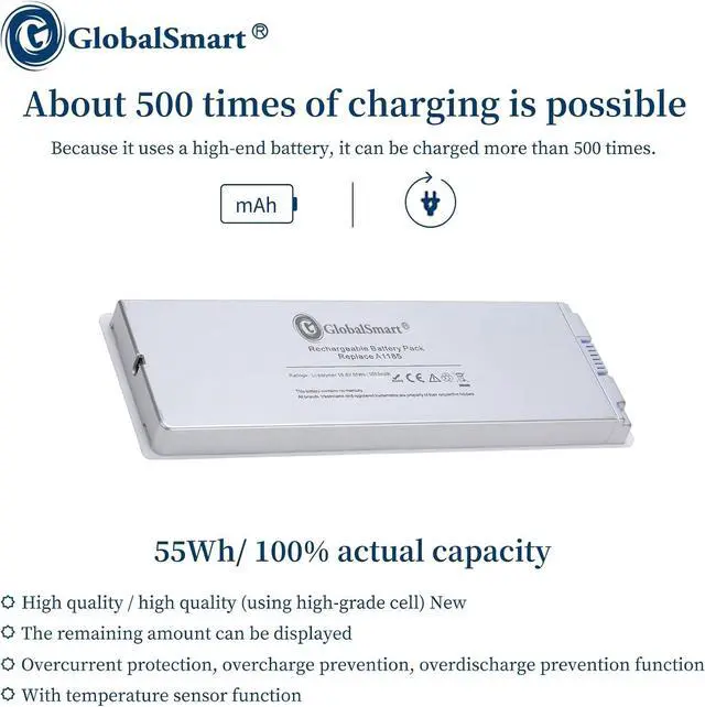 High Quality Conponents: Our Laptop batteries are assembled from top quality material and circuit boards to ensure durability and performance, our batteries are equipped with grade A battery cells that provide up to 500 charging cycles. Replacement For A1181 , MA561 , MA566J/A , MA561G/A , MA561FE/A A1185 , MA566 , MA561J/A , MA566G/A , MA566FE/A , MA561LL/A