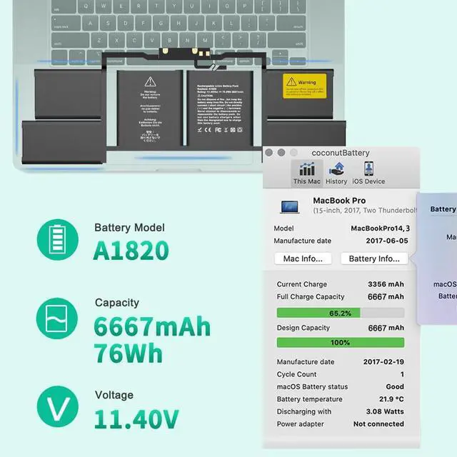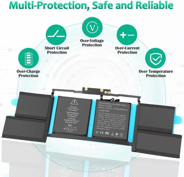LONG-LASTING BATTERY LIFE: With 11.4V capacity ( 76Wh/6667mAh ), the ( A1820 ) battery ensures all-day power for your laptops in a factory-fresh, never-used battery pack designed for maximum performance.