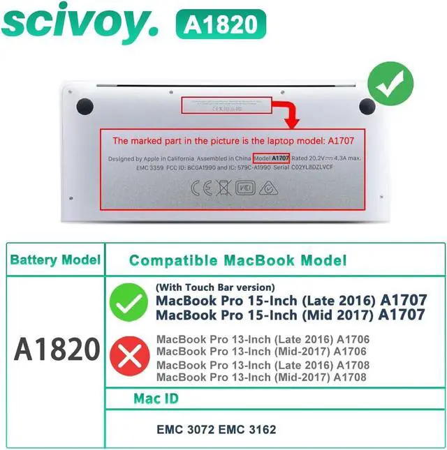 GUARANTEED FIT THESE LAPTOP MODELS: Compatible with MacBook Pro 15-inch A1707(Late 2016), MacBook Pro 15 inch A1707(Mid 2017), fits MLW72LL/A MLW82LL/A MLH32LL/A MLH42LL/A MLH52LL/A MPTU2LL/A MLW92LL/A MPTV2LL/A MPTR2LL/A MPTT2LL/A MPTW2LL/A MPTX2LL/A.