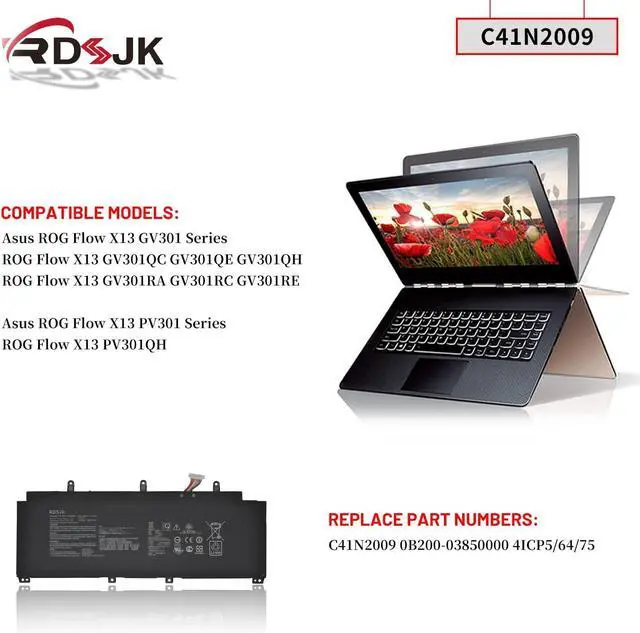 Compatible Models: Fit for Asus ROG Flow X13 GV301 GV301QC GV301QE GV301QH GV301RA GV301RC GV301RE Series; Fit for Asus ROG Flow X13 PV301 PV301QH Series; Fit for Asus ROG Flow X13 PV301QH-K6210R; Fit for Asus ROG Flow X13 GV301RC-LJ078 GV301RC-LJ076W GV301RC-LJ106W; Fit for Asus ROG Flow X13 GV301RE-LJ057W GV301RE-LJ090W GV301RE-LJ091W