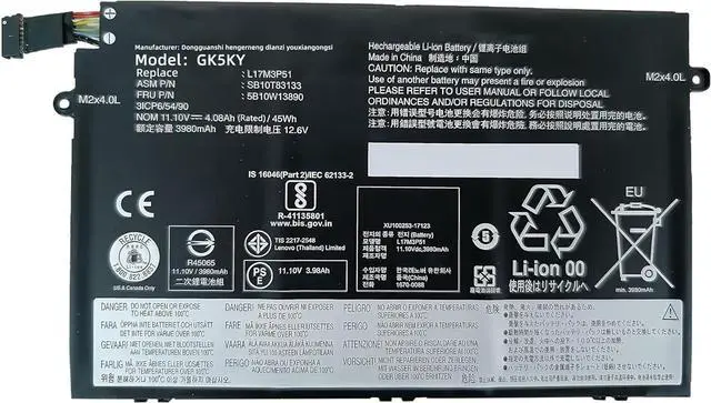 COMPATIBLE P/N:L17M3P51, SB10K97607, L17C3P51, SB10K97609, 01AV448, L17M3P52, SB10K97608, 01AV447, L17L3P51, SB10K79606, 01AV445, 5B10W13887, 5B10W13888, 5B10W13889, 5B10W13890, 01AV446