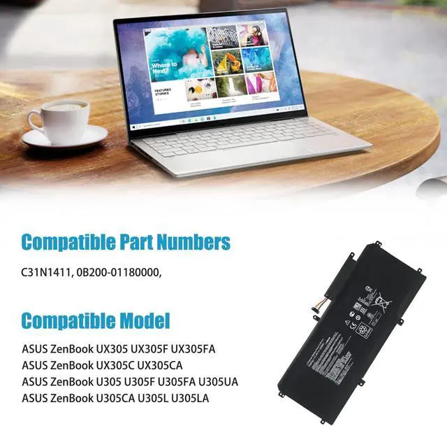 GUARANTEED FIT THESE LAPTOP MODELS: Compatible with ASUS ZenBook UX330 UX330U UX330UA UX330UAK Series, ASUS ZenBook UX330UA series: UX330UA-AH54 UX330UA-AH55 UX330UA-AH5Q UX330UA-FB018R UX330UA-FB019T UX330UA-FB025T UX330UA-FB038T UX330UA-FB061T UX330UA-FB064T UX330UA-FB088T UX330UA-FB089T UX330UA-FB100T and more.